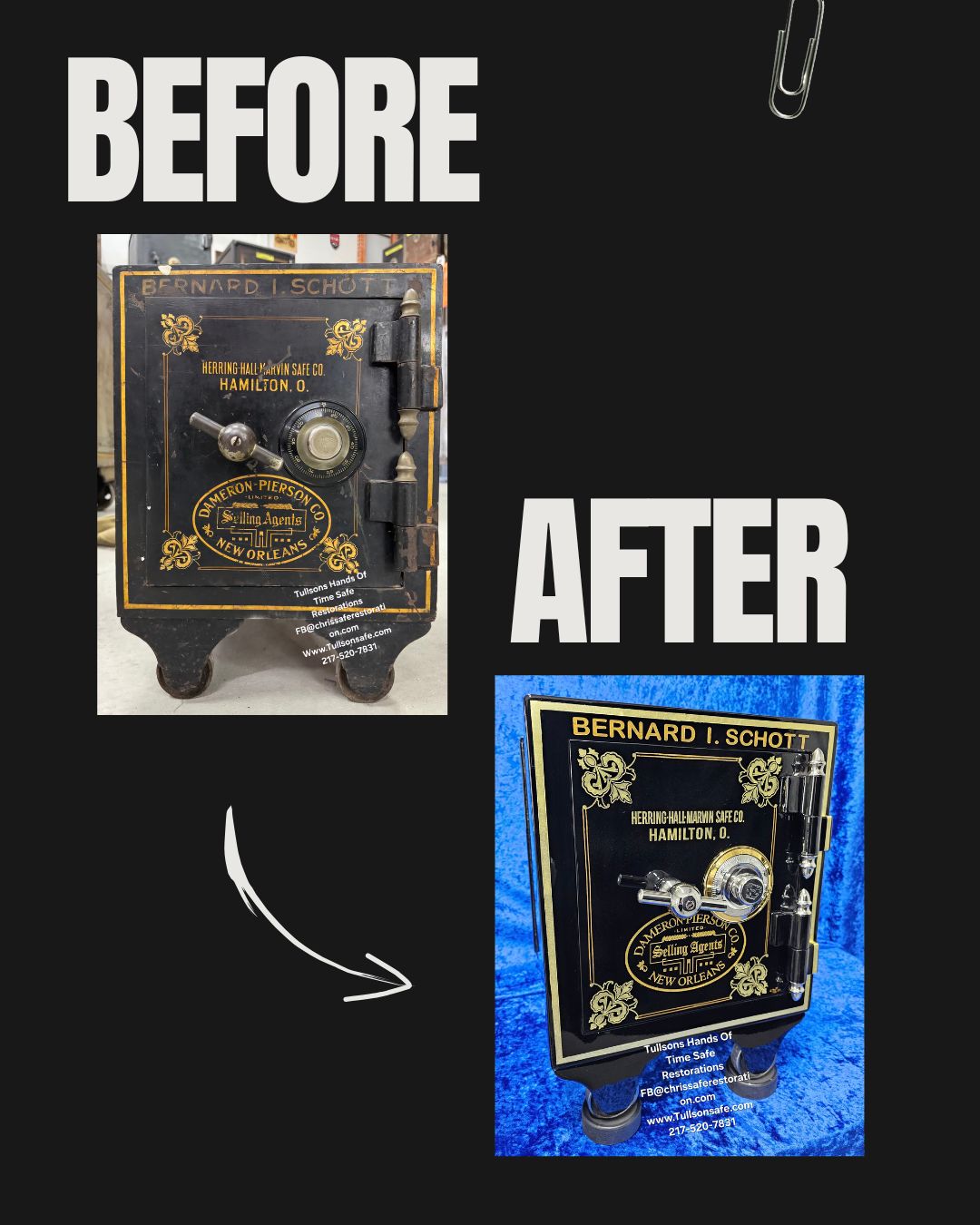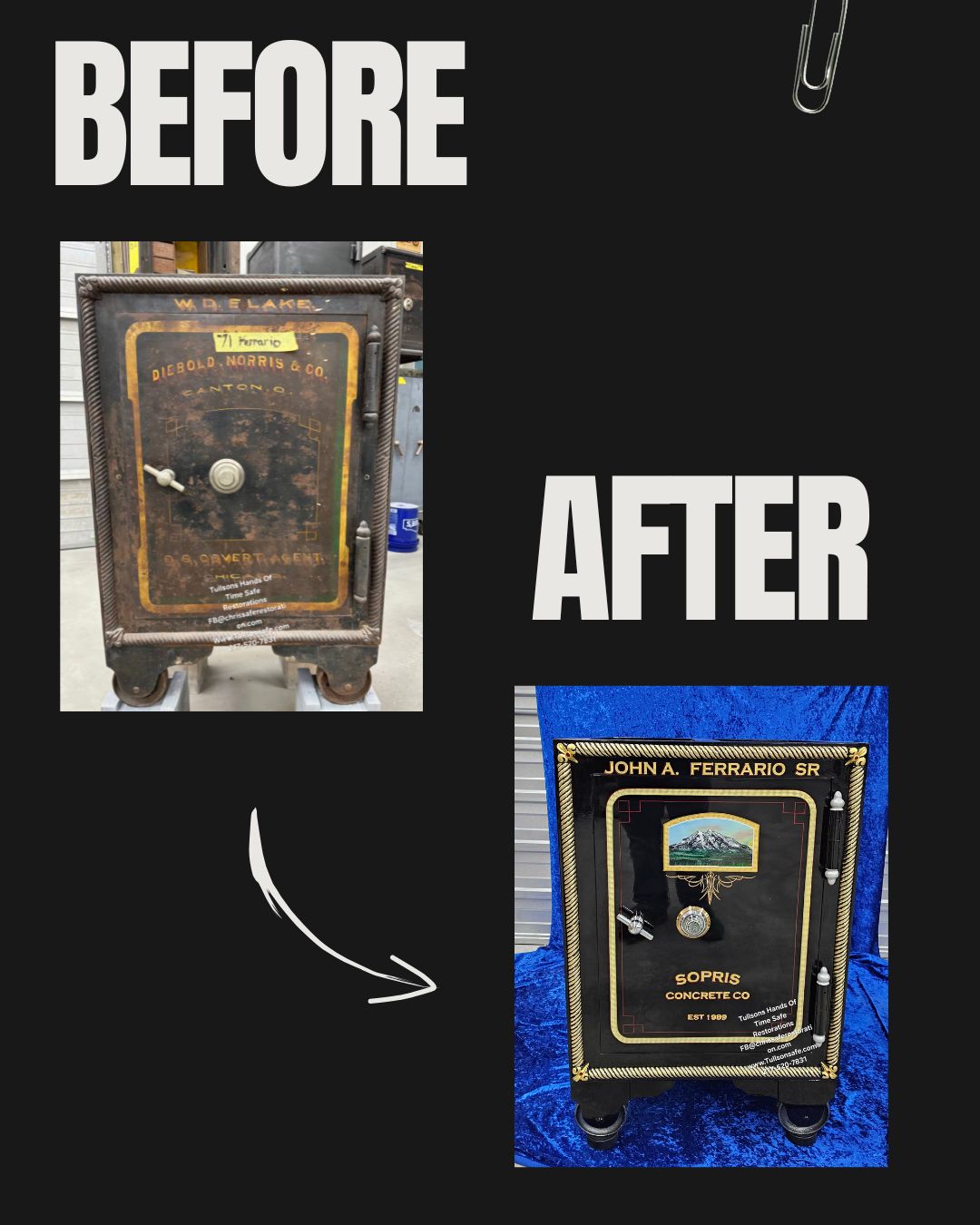 With over 350 safes completed, our experience remains unquestionable. Our family-owned team—with more than 15 years of specialized expertise—restores antique safes like Mosler, Diebold, Hall’s, and other vintage models to full functionality, historical authenticity, and reliable security.